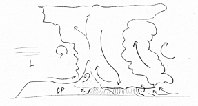 Obrázek č. 3: Jezero chladného vzduchu (cold pool, CP)